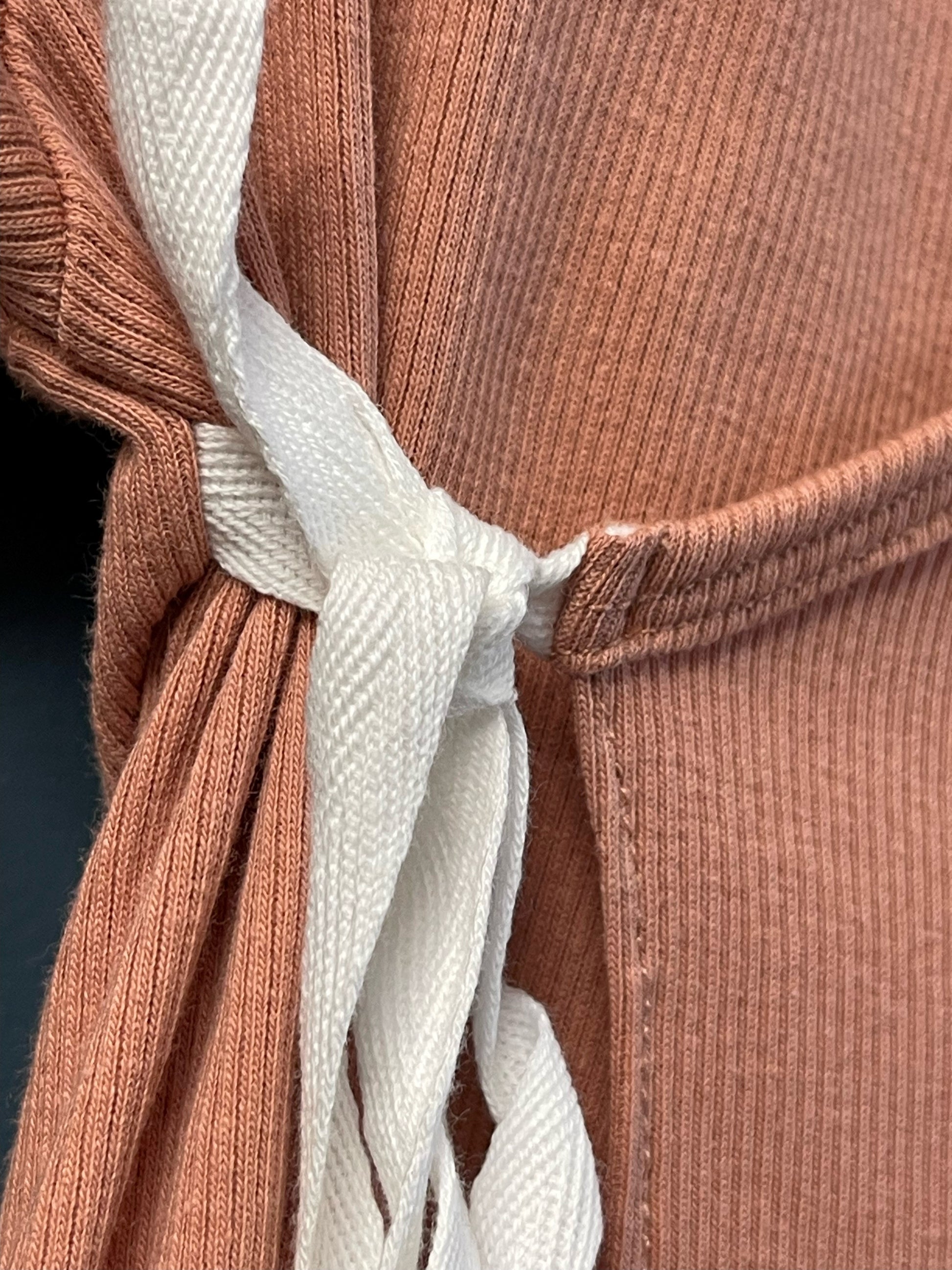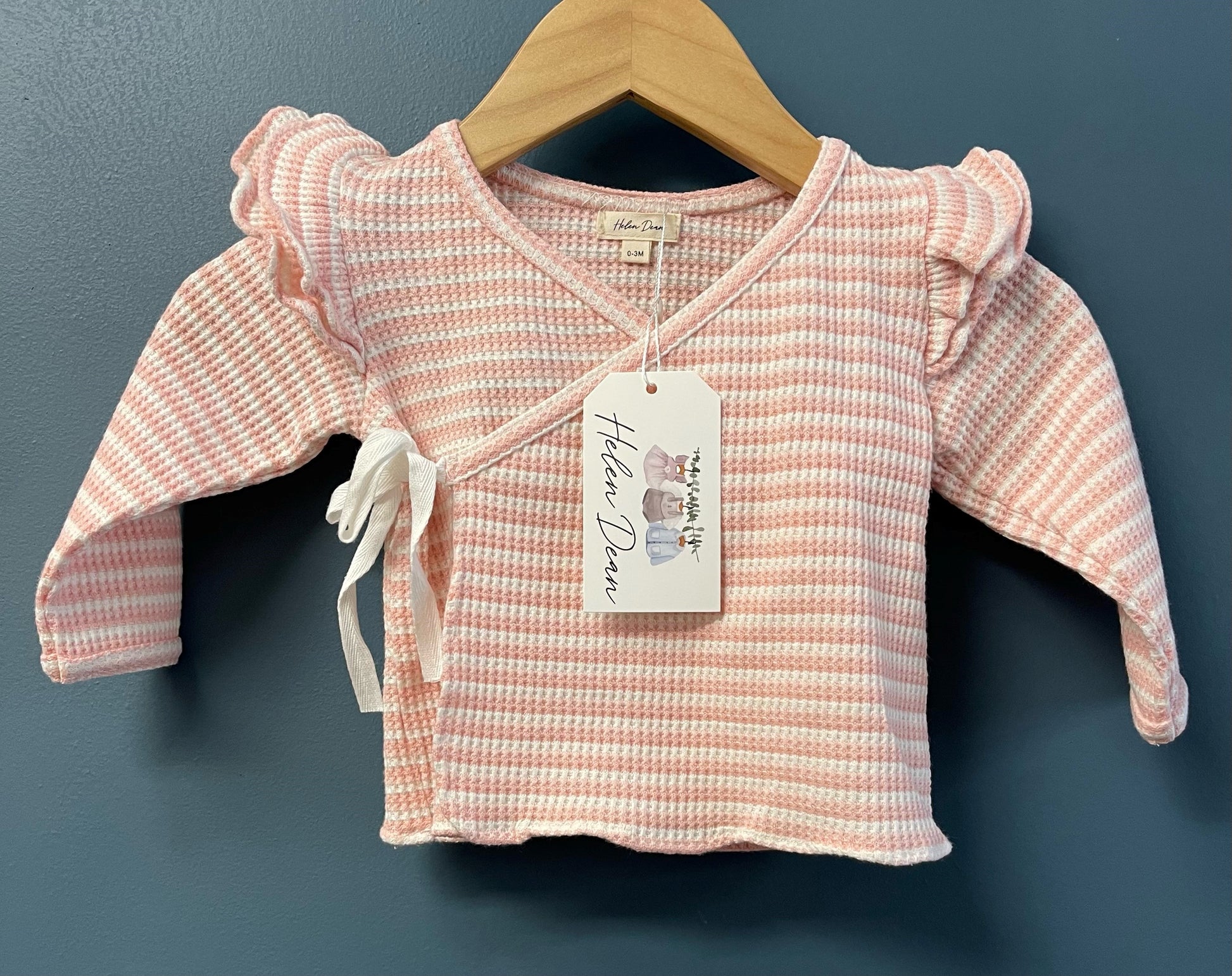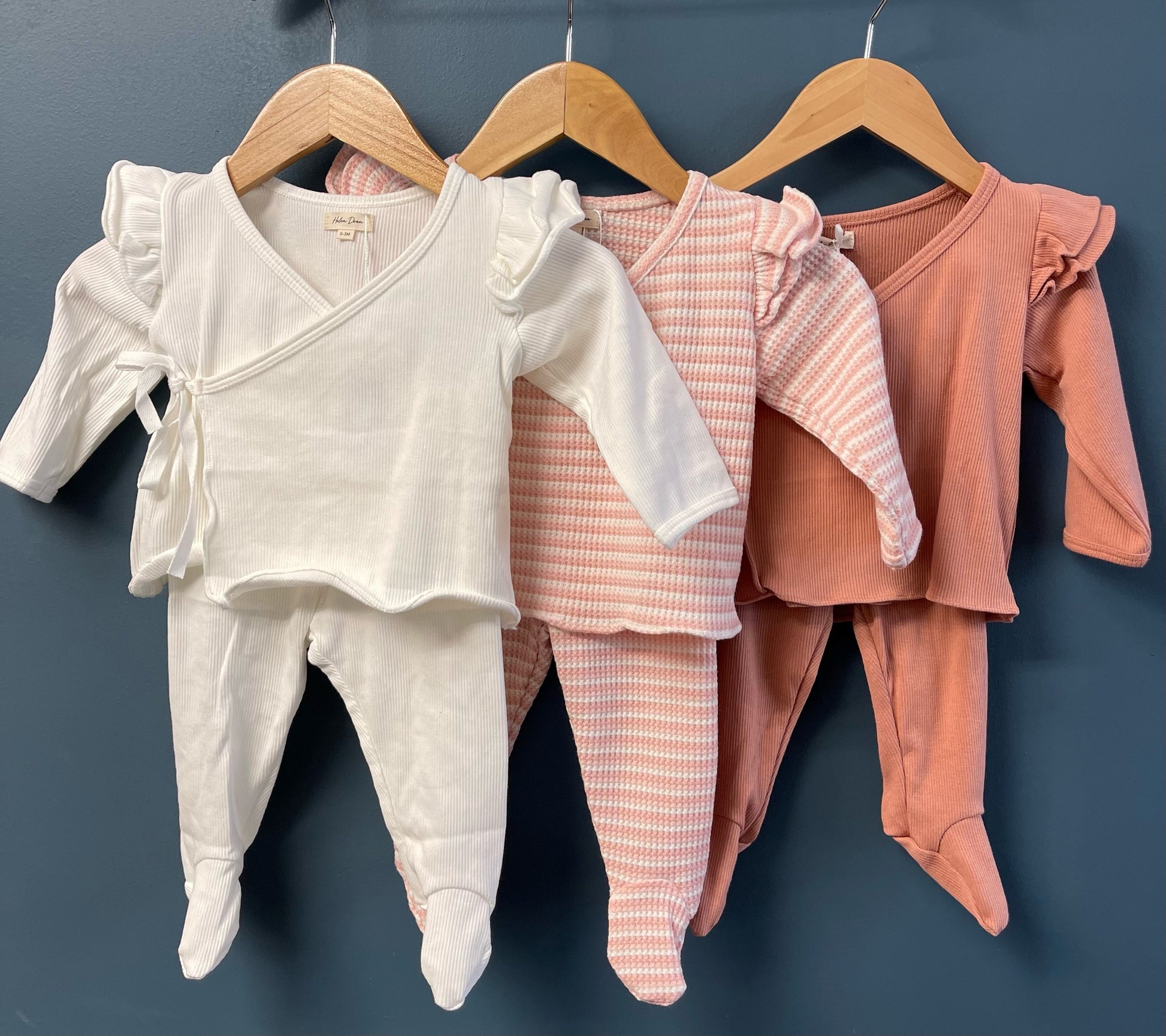 Incredibly soft 2 piece set with footed pants and a side tie ruffle front.