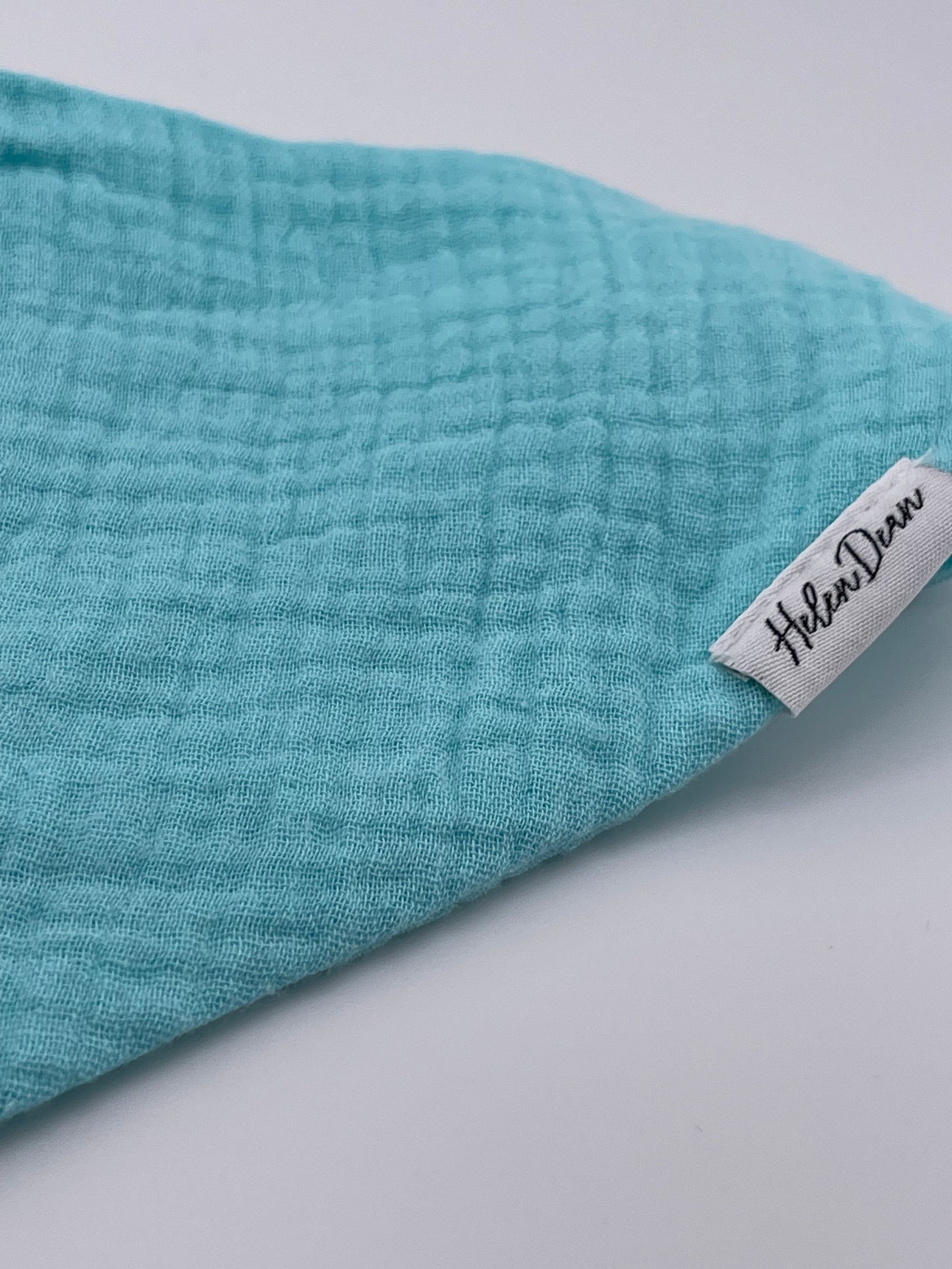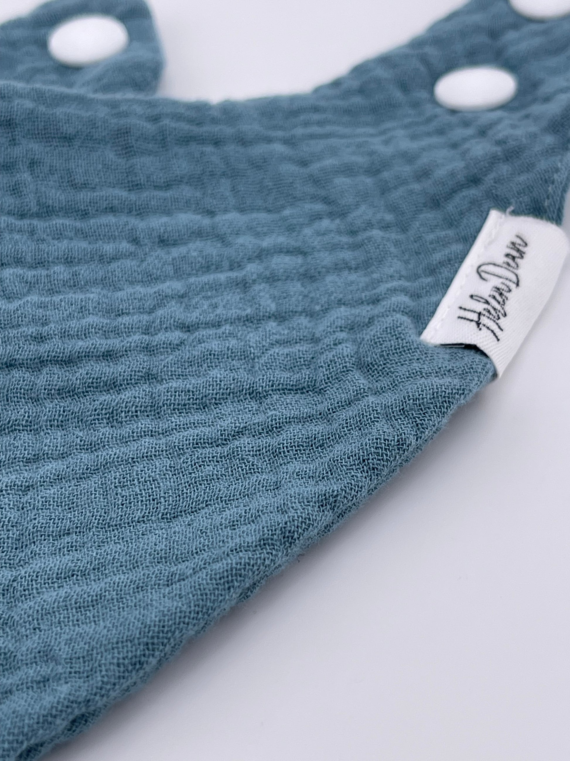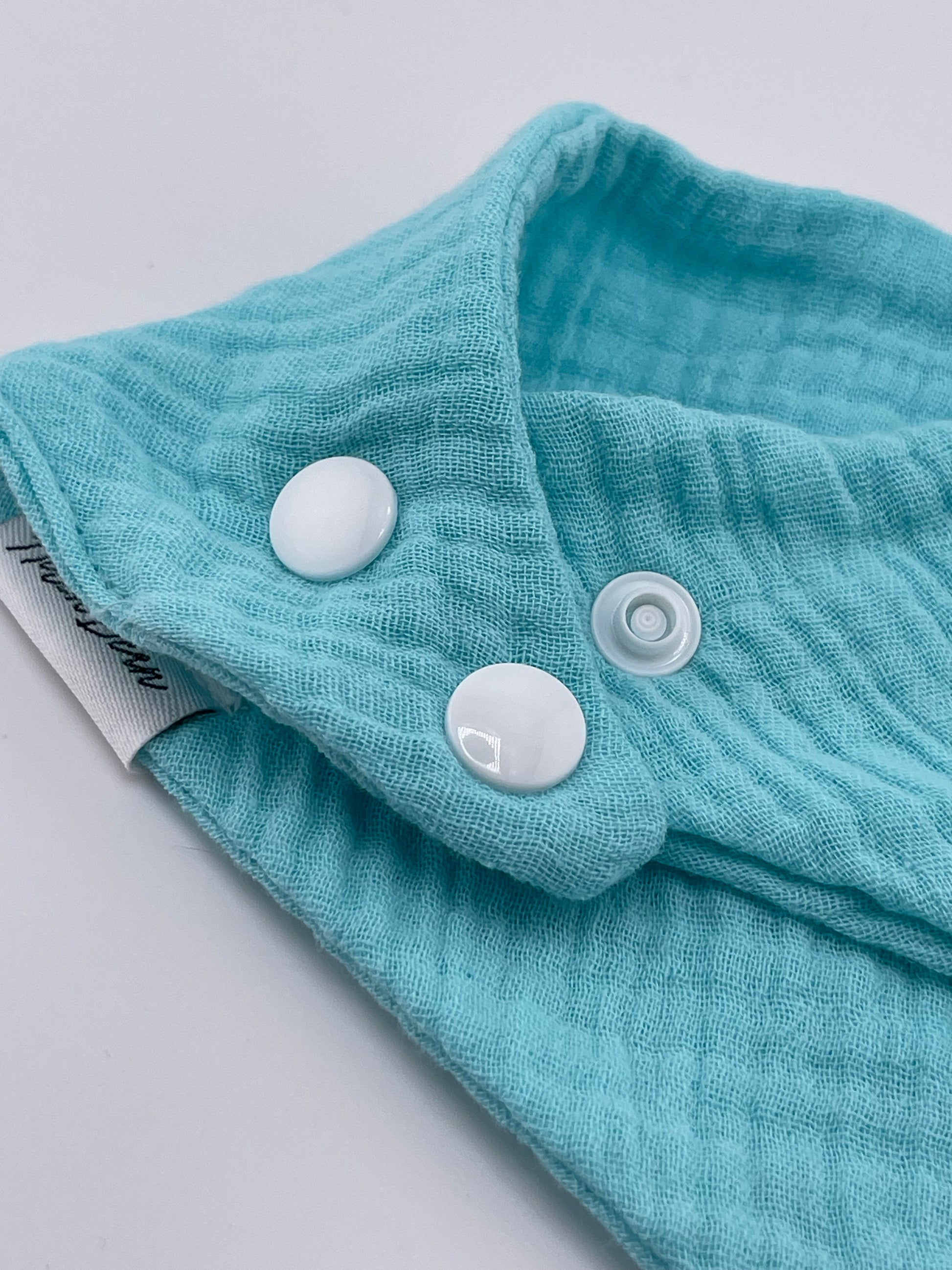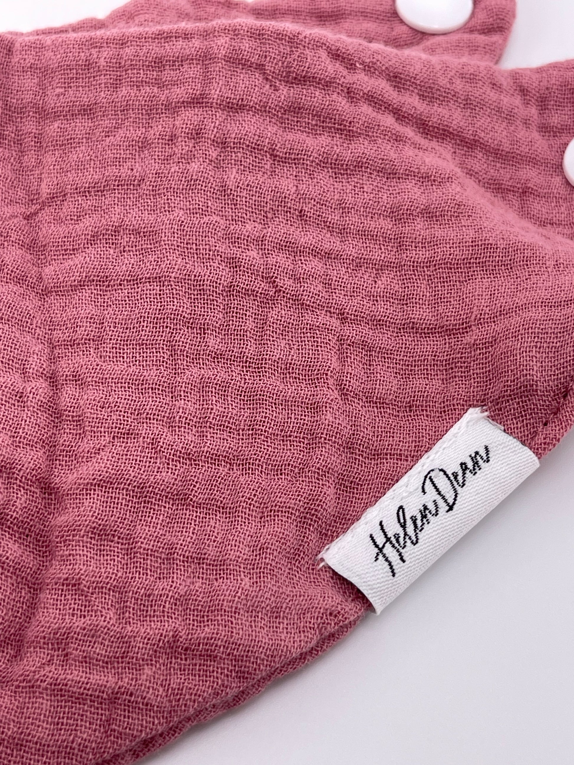 These incredibly soft bibs are made with 100% muslin. These were intentionally designed with a baby in mind. You will find these bibs are smaller in size to fit comfortably around a newborn baby without the excess gathering usually found with other bibs.