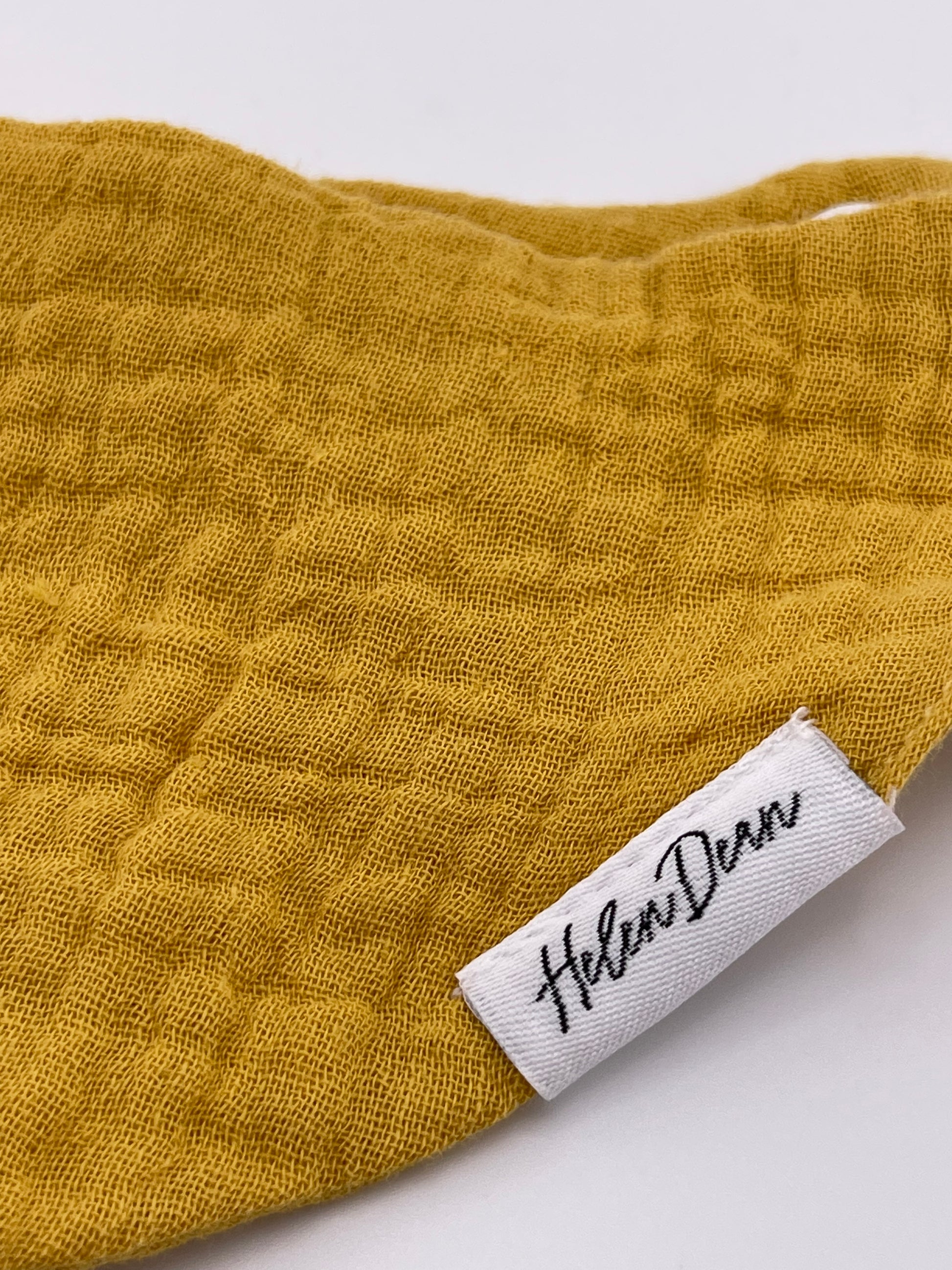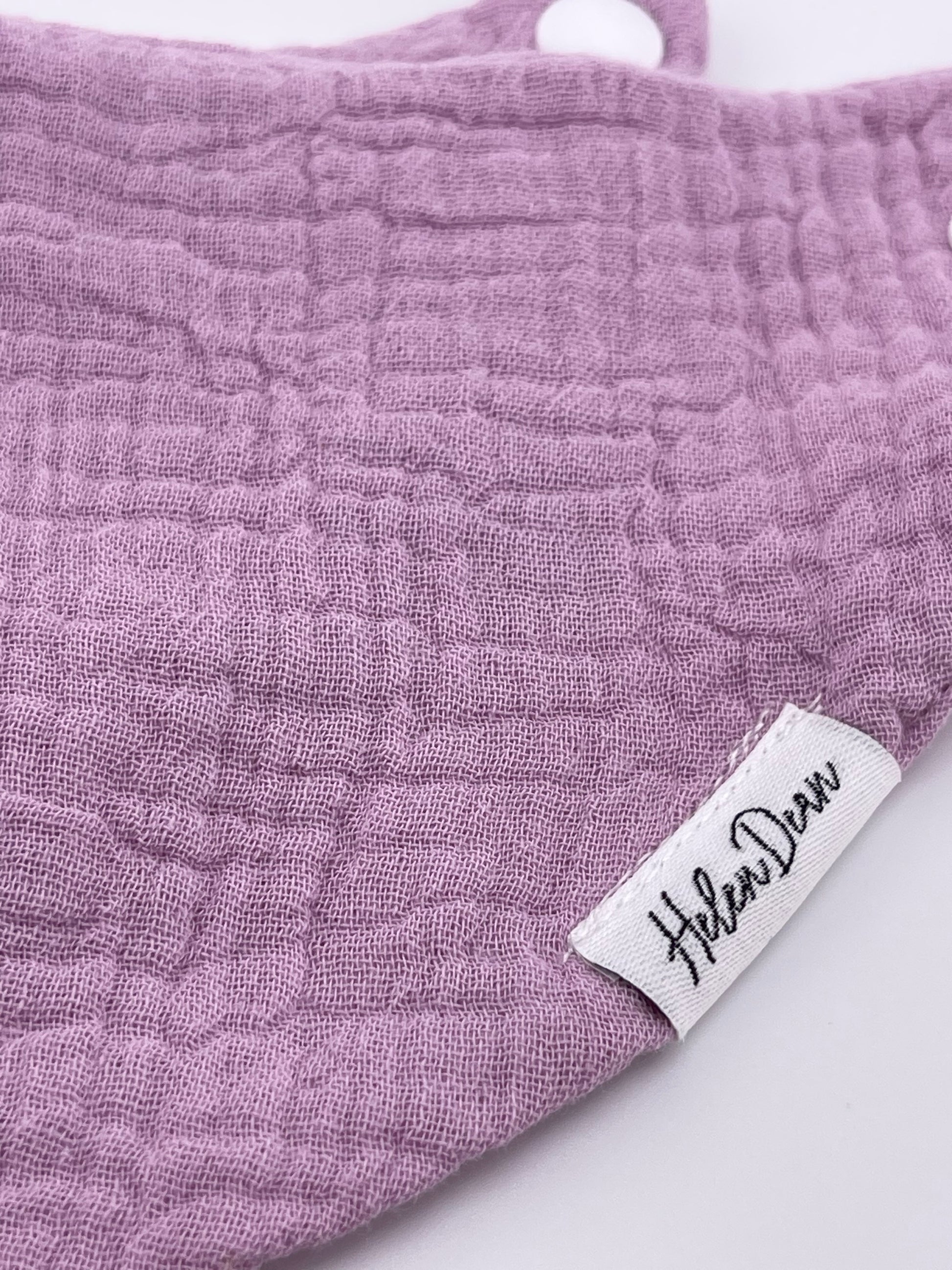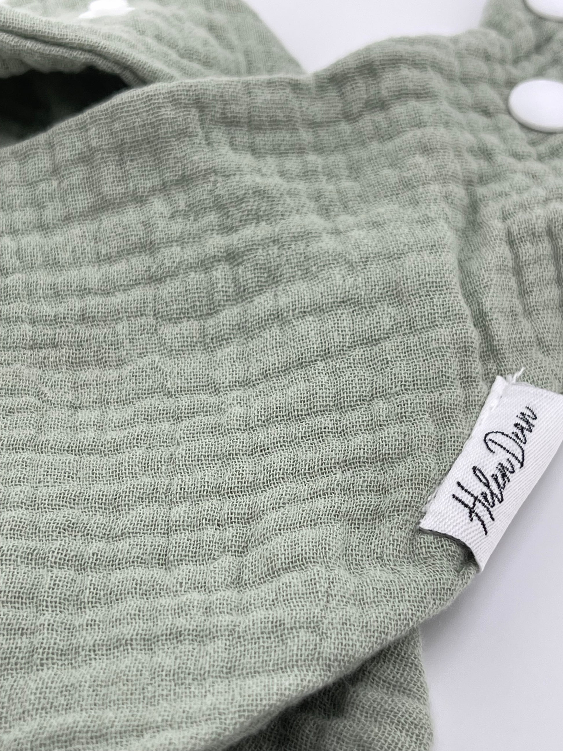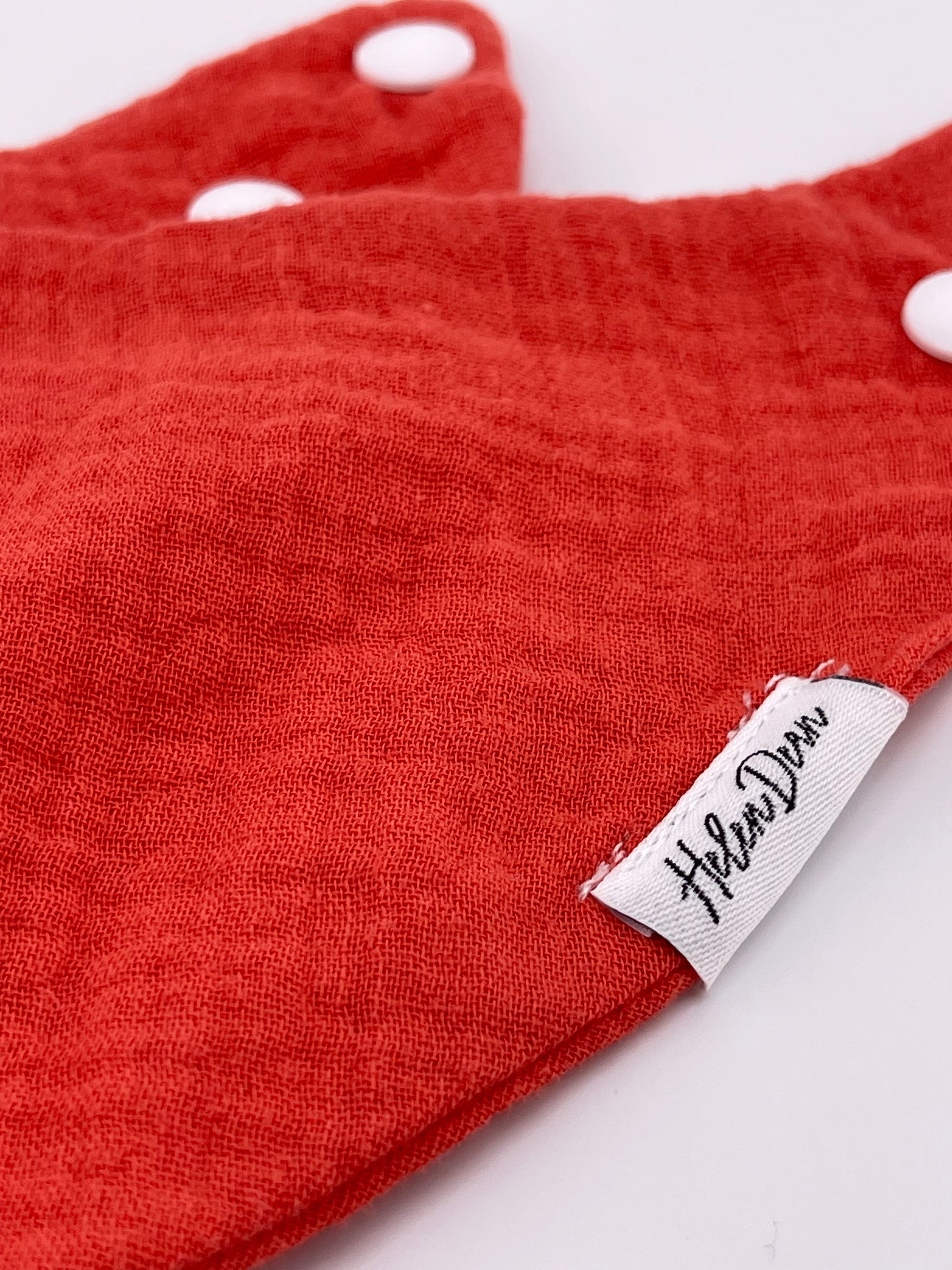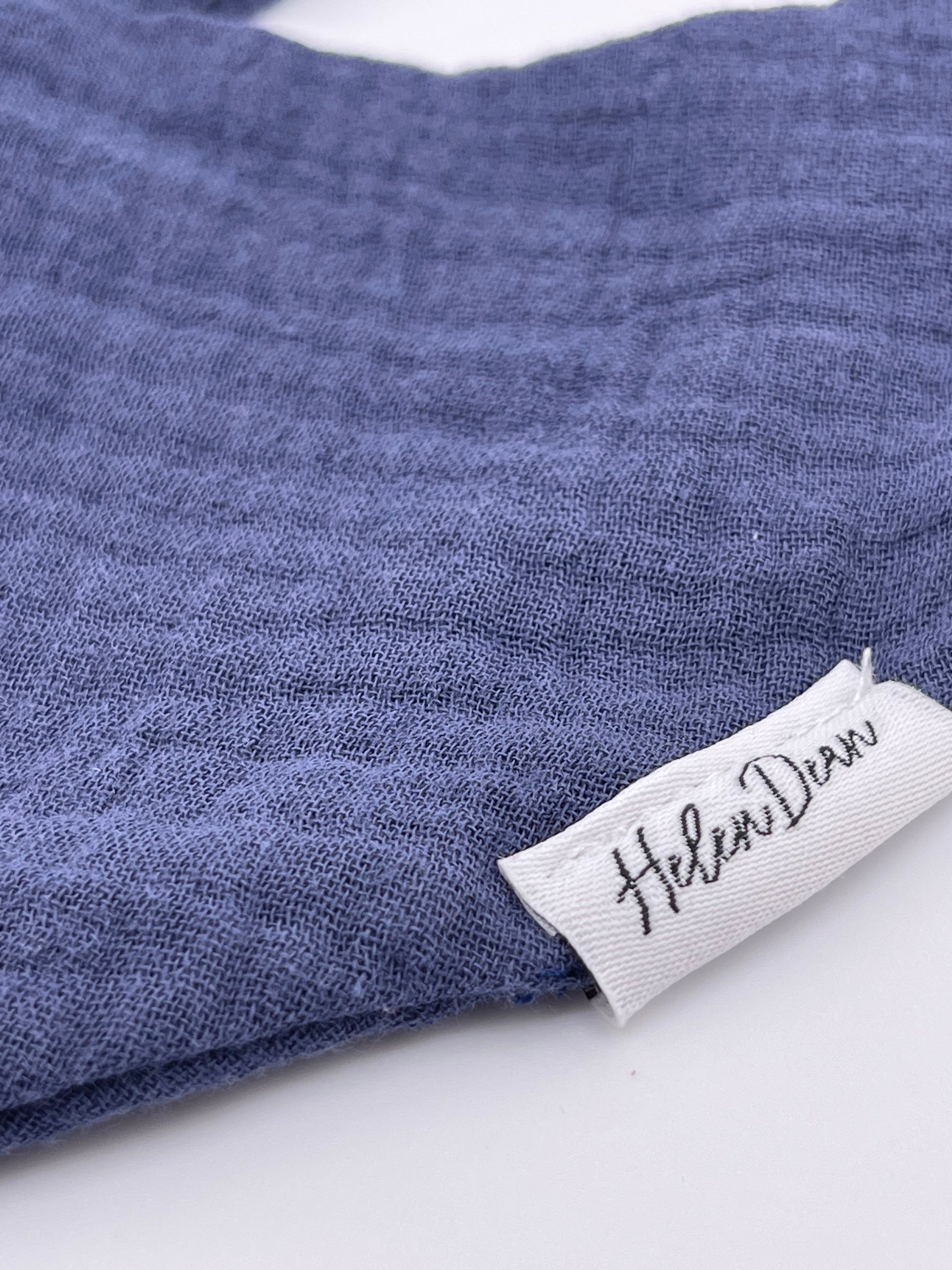 These incredibly soft bibs are made with 100% muslin. These were intentionally designed with a baby in mind. You will find these bibs are smaller in size to fit comfortably around a newborn baby without the excess gathering usually found with other bibs.