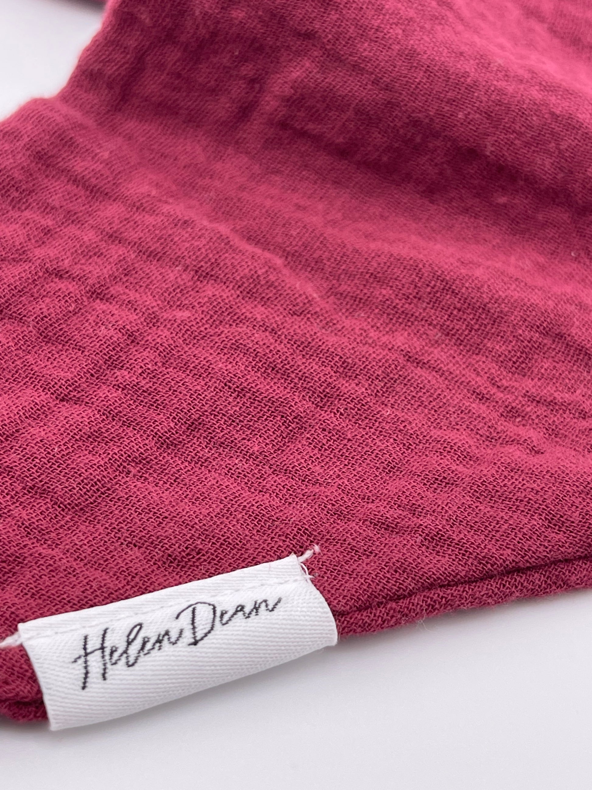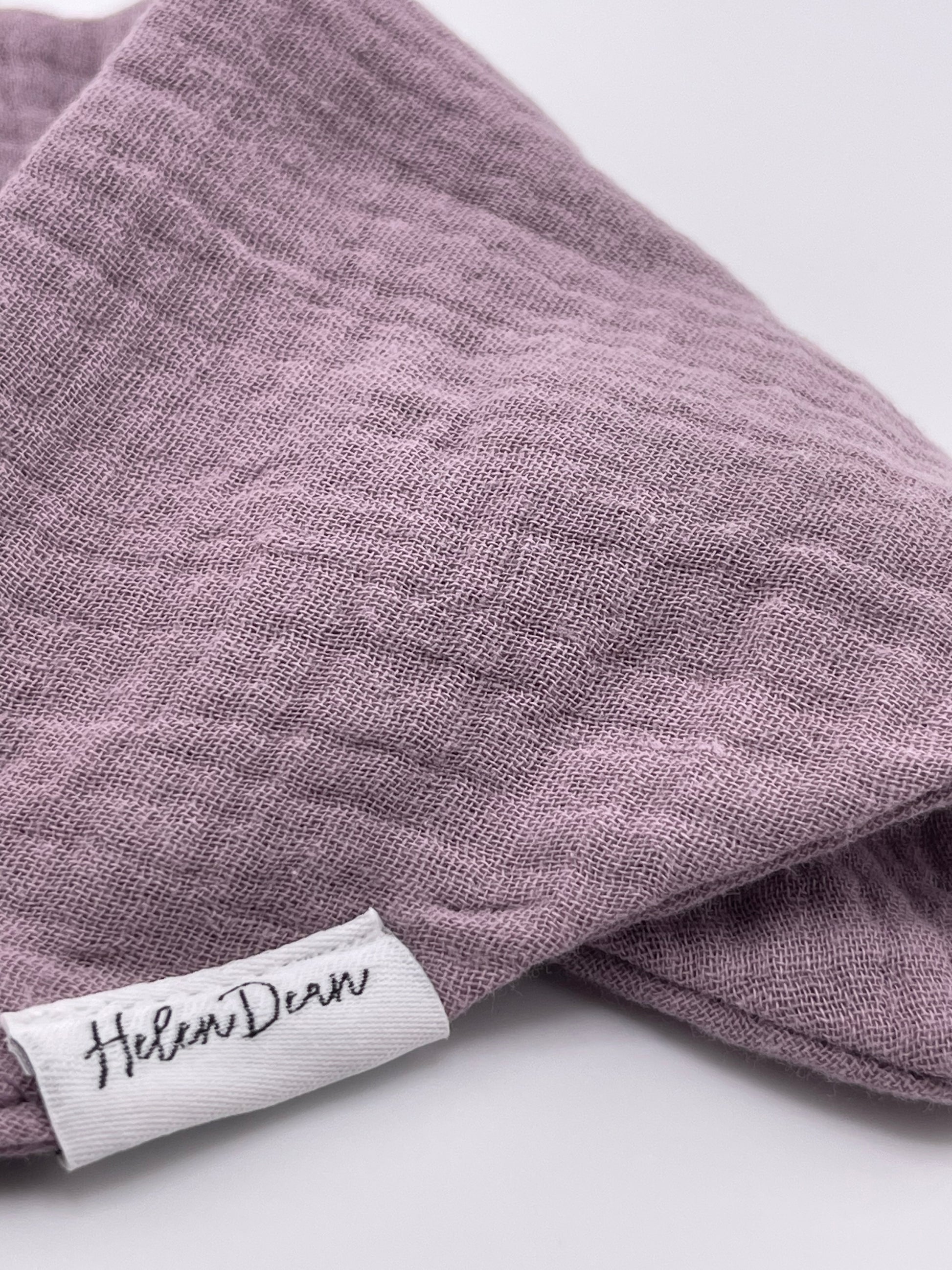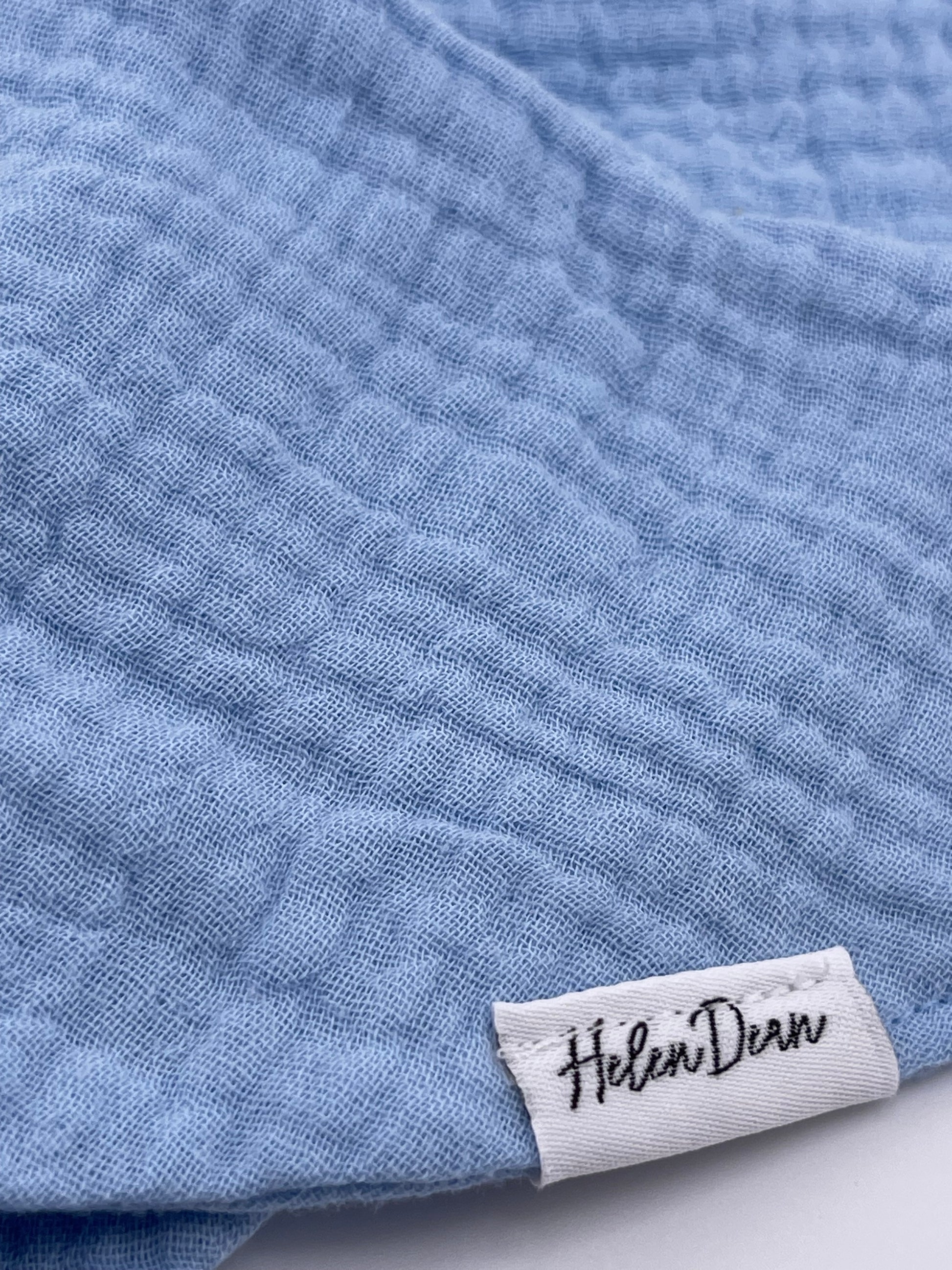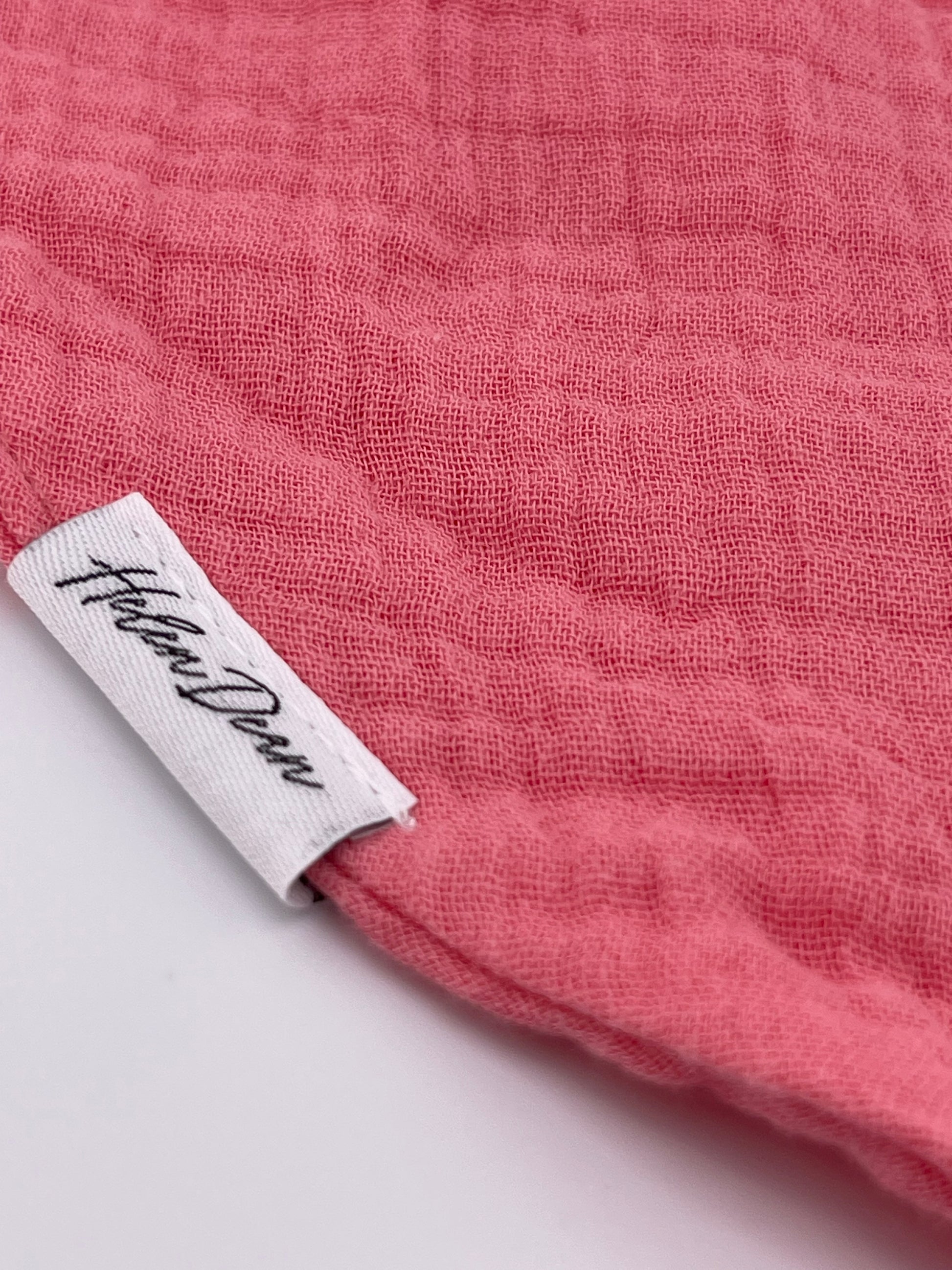 These incredibly soft bibs are made with 100% muslin. These were intentionally designed with a baby in mind. You will find these bibs are smaller in size to fit comfortably around a newborn baby without the excess gathering usually found with other bibs.